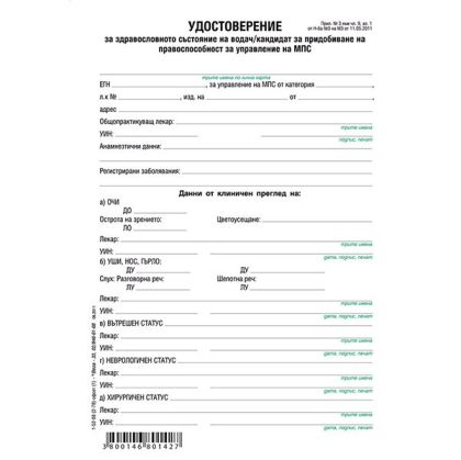 Медицинско свидетелство за водач на МПС Вестник, А5 100 л.