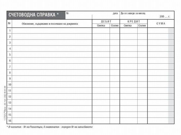 Вид:Счетоводни формуляри, ДМА