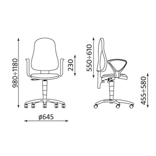 • Газов амортисьор за регулиране височината на стола;