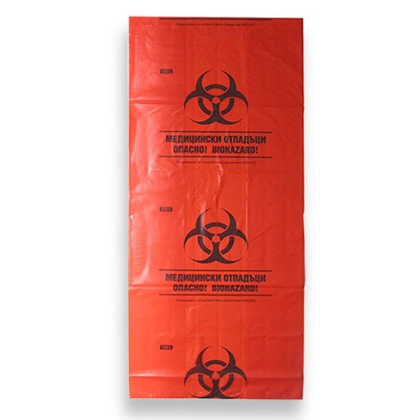 Чували за опасни отпадъци с плоско дъно, пакет LPDE, 46х110 cm, 120 l, 50 микрона 25 бр. Червени